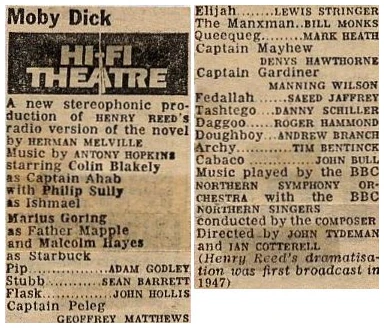 A new stereophonic production of Henry Reed's radio version of the novel by Herman Melville.